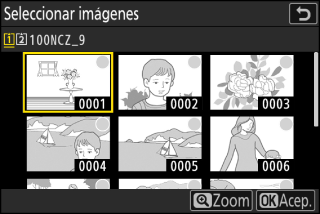Para seleccionar otra imagen, pulse el botón W (Q). Marque la imagen deseada y pulse J para seleccionarla como imagen de referencia.