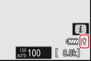 Aparecerá un icono de suministro de energía USB en la pantalla de disparo y en el panel de control cuando la cámara reciba energía de una fuente externa.