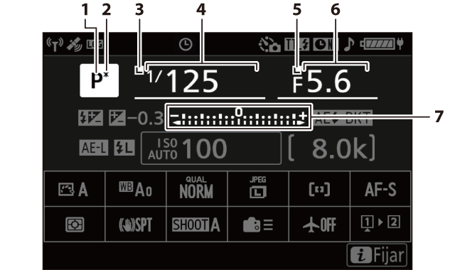 Indicador de compensación de exposición (Compensación exposición) Valor de compensación de exposición (Compensación exposición) |