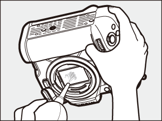 Si no puede eliminar la materia extraña del sensor de imagen utilizando la limpieza del sensor de imagen, podrá limpiar el sensor manualmente tal como se describe a continuación. Sin embargo, tenga en cuenta que el sensor es extremadamente delicado y se daña con facilidad; se recomienda que la limpieza manual la realice solamente un representante del servicio técnico autorizado de Nikon.