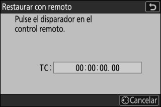 Cuando se selecciona [], aparece un cuadro de diálogo de restauración de código de tiempo. Pulse el disparador del WR‑T10 para restablecer el código de tiempo.