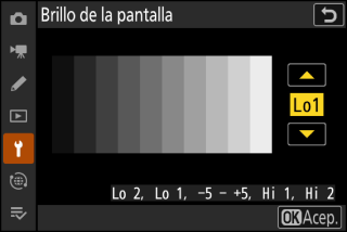 [], [], [] y [] se han añadido a las opciones disponibles para [] en el menú de configuración (Brillo de la pantalla).