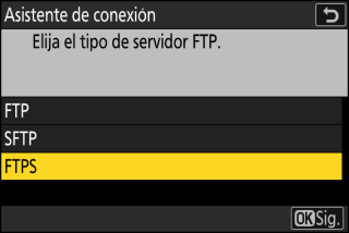Para utilizar FTPS, seleccione [] como tipo de servidor al crear perfiles de host usando [] en el menú de red.