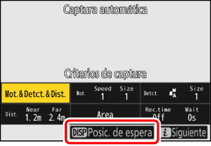La cámara restablece la posición de enfoque cuando entra en el modo de espera para la captura automática. La posición de enfoque restablecida varía con la opción seleccionada para [Criterios de captura].