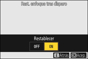 Ahora puede seleccionar [Rest. enfoque tras disparo] pulsando el botón DISP en el cuadro de diálogo de confirmación de ajustes antes de iniciar la captura automática. Esto le permite seleccionar si desea restablecer la posición de enfoque (distancia de enfoque) cuando la cámara entra en modo de espera para la captura automática.