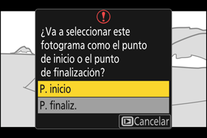 Para ajustar un bucle que empiece con el fotograma actual, marque [P. inicio] y pulse J.