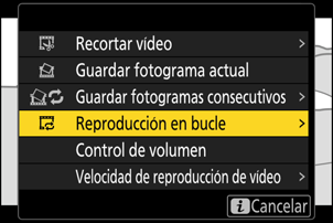 Nuevo elemento del menú de reproducción de vídeo i: “Reproducción en bucle”