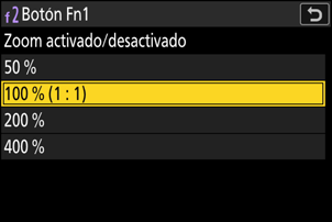 Se ha añadido una opción de ampliación del [400 %] a [Zoom activado/desactivado] y está disponible para las configuraciones personalizadas f2 [Controles pers. (disparo)] y g2 [Controles personalizados]. También hemos cambiado los nombres de otras opciones a: