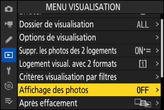 Si les seules options disponibles pour la rubrique actuelle sont [] et [], vous pouvez passer de [] à [] ou vice versa simplement en appuyant sur J, en appuyant à droite du sélecteur multidirectionnel (2) ou en touchant la rubrique à l’écran.