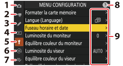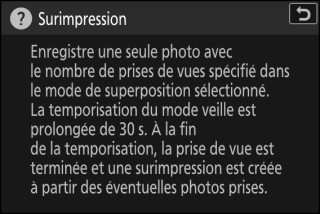 Le cas échéant, vous pouvez afficher une description de la rubrique sélectionnée actuellement en appuyant sur la commande W (Q).