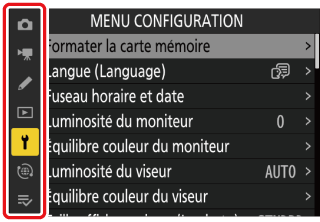 Appuyez sur 4 pour placer le curseur dans la zone de sélection des menus.