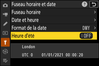 Sélectionnez [] (heure d’été activée) ou [] (heure d’été désactivée).