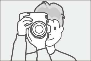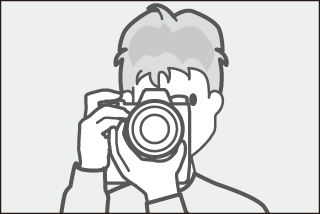 Tenez la poignée dans votre main droite et soutenez le boîtier de l’appareil photo ou l’objectif avec votre main gauche. Calez les coudes contre le buste.