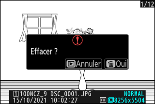 O (Q) pour afficher une boîte de dialogue de confirmation. Appuyez à nouveau sur la commande O (Q) pour supprimer l’image et revenir au mode de visualisation.