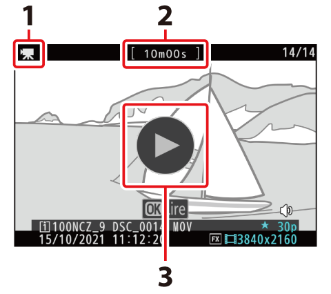 Les vidéos sont signalées par l’icône 1. Touchez l’icône a à l’écran ou appuyez sur la commande J pour démarrer la lecture.