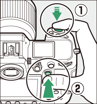 Tout en maintenant le déclencheur enfoncé à mi-course (q), appuyez au centre du sélecteur secondaire (w) pour mémoriser la mise au point. La mise au point reste mémorisée tant que vous appuyez au centre du sélecteur secondaire, même si vous relâchez le déclencheur.