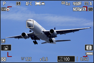 Si une voiture, une moto, un train, un avion ou un vélo est détecté lorsque [] est sélectionné, le point AF s’affiche sur le véhicule en question. Dans le cas des trains, l’appareil photo détecte uniquement l’avant. Dans le cas des avions, l’appareil photo détecte le fuselage, le nez ou la cabine de pilotage selon la taille de l’avion.