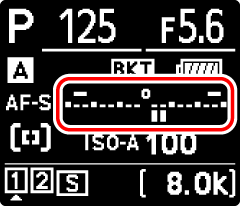 Lorsque [] est sélectionné, l’appareil fait varier à la fois l’exposition et l’intensité du flash. Sélectionnez [] pour faire varier uniquement l’exposition, [] pour faire varier uniquement l’intensité du flash. Notez que le bracketing du flash est disponible uniquement en mode de contrôle i‑TTL et, lorsqu’il est pris en charge, en mode ouverture auto (qA) (Contrôle du flash i‑TTL, Flashes compatibles).