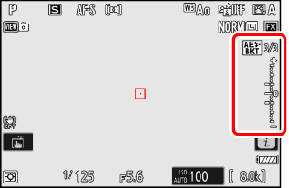 Avec tous les réglages à l’exception de [], un indicateur et une icône de bracketing s’affichent sur l’écran de prise de vue et sur l’écran de contrôle.
