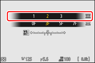 Maintenez appuyée la commande BKT et tournez la molette de commande principale pour choisir le nombre de prises de vues dans la séquence de bracketing.