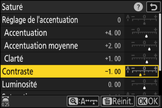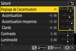 Les options disponibles varient selon le Picture Control sélectionné.