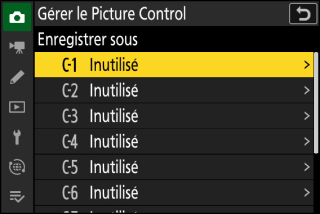Choisissez une destination pour le Picture Control personnalisé (C-1 à C-9).