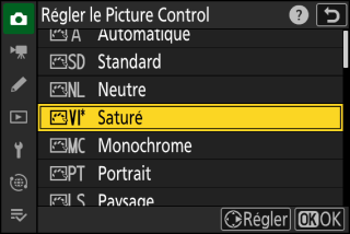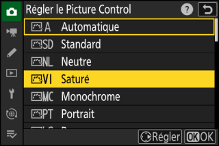 Sélectionnez un Picture Control.