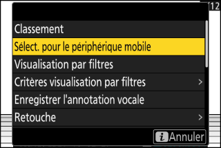 Les options du menu i permettant de sélectionner les images à transférer dépendent du type de périphérique connecté :