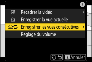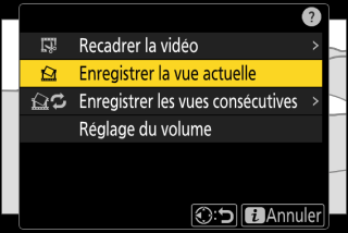 La séquence sélectionnée sera enregistrée sous forme d’une série d’images fixes JPEG. Le nombre d’images dépend de la cadence de la vidéo.