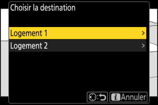 L’appareil photo ne vous demandera pas de sélectionner le logement si une seule carte mémoire est insérée.