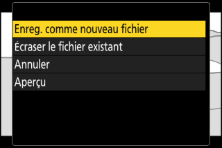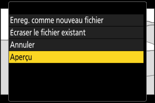 Choisissez [] pour enregistrer la copie modifiée en tant que nouveau fichier. Pour remplacer la vidéo d’origine par la copie modifiée, choisissez [].
