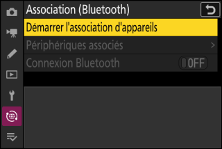 Avant de vous connecter en Bluetooth pour la première fois, vous devez associer l’appareil photo et le périphérique mobile.