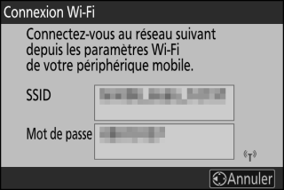 Le SSID et le mot de passe de l’appareil photo s’affichent.