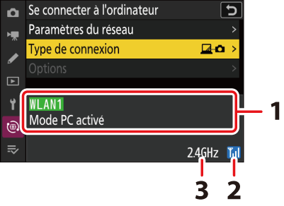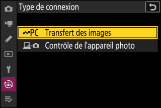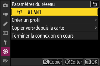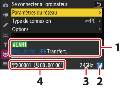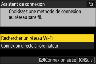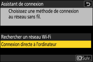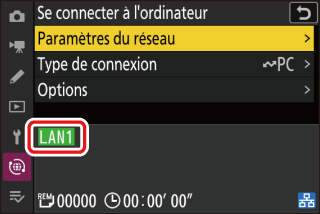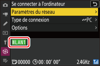 Sélectionnez [] dans le menu Réseau de l’appareil photo, puis mettez en surbrillance [] et appuyez sur 2.