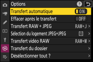 Pour supprimer le marquage de transfert de toutes les images, sélectionnez [] > [] > [] dans le menu Réseau.