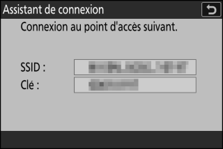Le SSID et la clé de chiffrement de l’appareil photo s’affichent.
