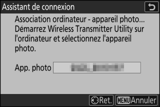 Sélectionnez l’appareil photo dans Wireless Transmitter Utility.