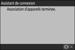 Lorsque l’appareil photo affiche un message indiquant que l’association a été effectuée, appuyez sur J.