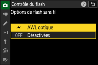 Pour obtenir des informations sur la modification des réglages des flashes asservis sans fil, reportez-vous à « Prise de vue photographique avec flashes asservis » (Prise de vue photographique avec flashes asservis).