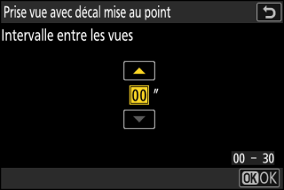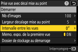 Choisissez l’intervalle entre les prises de vues et appuyez sur J.