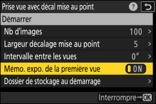 Activez ou désactivez la mémorisation de l’exposition de la première vue.