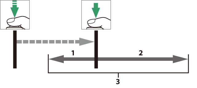 Si une option autre que [] est sélectionnée, l’appareil photo enregistre les vues dans la mémoire tampon tant que vous appuyez sur le déclencheur à mi-course, mais seules les vues ajoutées à la mémoire tampon dans les dernières n secondes, où n est la valeur sélectionnée pour [], seront enregistrées sur la carte mémoire lorsque vous appuierez sur le déclencheur jusqu’en fin de course (« Prise de vue avec pré-déclenchement »).
