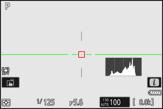 Notez que l’affichage de l’horizon virtuel risque d’être imprécis lorsque l’appareil photo est très incliné en avant ou en arrière. L’appareil photo n’affiche pas l’horizon virtuel ou les indicateurs de tangage et de roulis lorsqu’il est tenu selon des angles qui ne permettent pas de mesurer l’inclinaison.