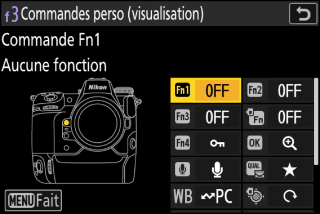 Vous pouvez attribuer les rôles suivants aux molettes de commande. Pour afficher les options, mettez en surbrillance les rubriques et appuyez sur 2.