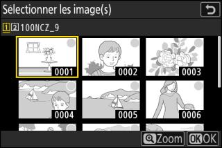 Pour choisir une autre image, appuyez sur la commande W (Q). Mettez en surbrillance l’image souhaitée et appuyez sur J pour la sélectionner comme image de référence.