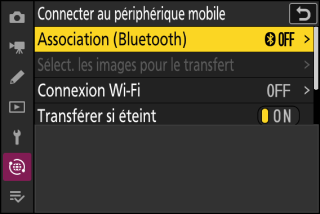 Si [] est sélectionné, le transfert des photos sur les périphériques mobiles connectés en Bluetooth se poursuit même lorsque l’appareil photo est hors tension.