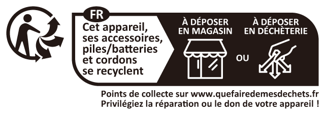 Tous les accumulateurs/piles, qu’ils portent ce symbole ou non, doivent être jetés séparément dans un point de collecte approprié. Ils ne doivent pas être jetés avec les déchets ménagers.