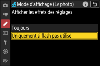 [] : les effets des réglages sont également visibles lorsqu’un flash est installé sur