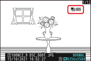 Lorsque [] est sélectionné, seule la première vue de chaque rafale s’affiche dans la liste des imagettes. La première photo de chaque rafale est signalée par l’icône c et par un chiffre indiquant le nombre total de vues que comporte la rafale.