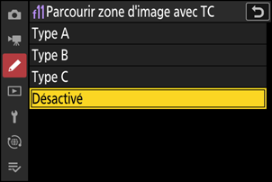 Nouveau réglage personnalisé : f11 « Parcourir zone d’image avec TC »